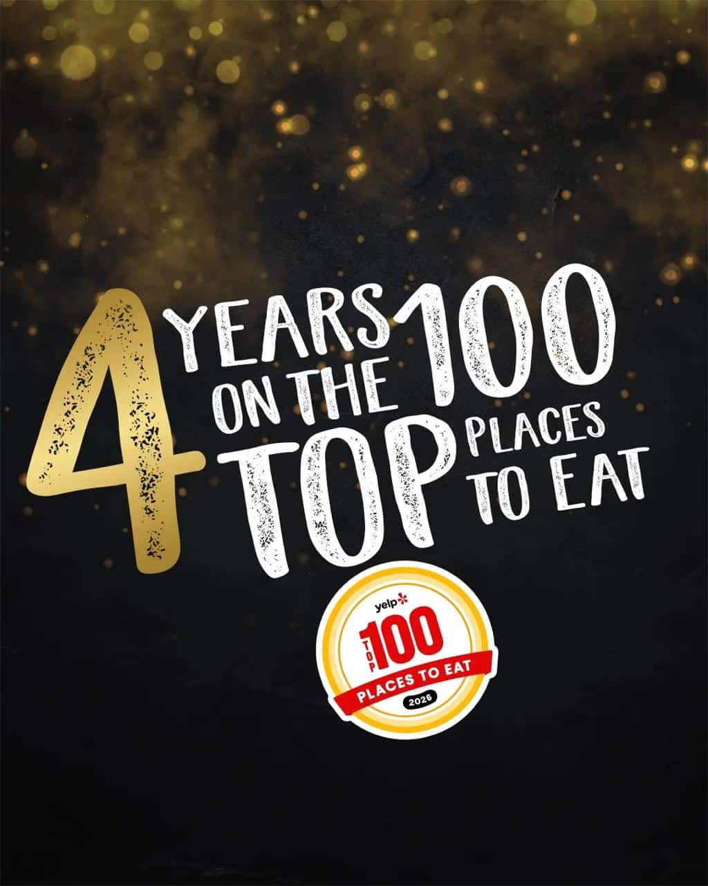 33 on Yelp’s Top 100 Places to Eat in the US 2026!